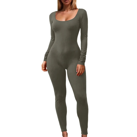 Soild Autumn Jumpsuits For Women Fashion Shapewear Bodysuit Yoga Jumpsuits Workout Ribbed Long Sleeve Sport Jumpsuit